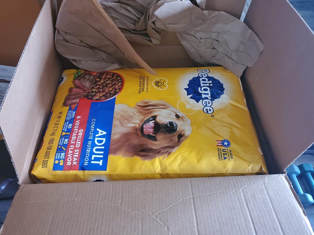 Great product and I have it set up on automatic delivery. This helps me not to have to lug that big bag of dog food into a cart, into my car, and out at my house. Always packaged securely and my dogs enjoy.